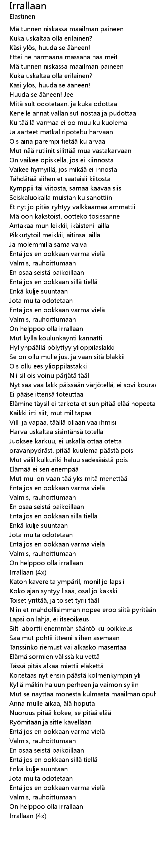 | On helppoo olla irrallaan | |