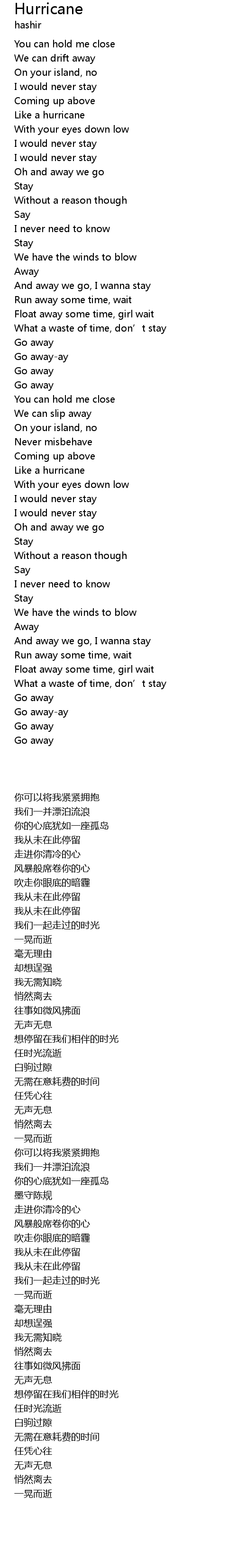 | [00:33.97] | Like a hurricane |