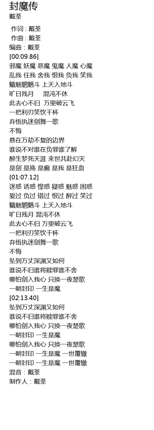 | [03:13.98] | 一朝封印 一生是魔 一世覆辙 |