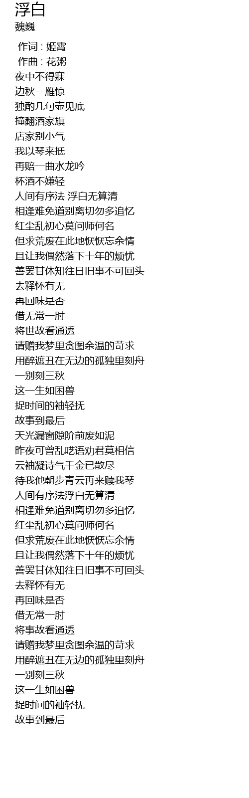| [00:00.000] | 作词 : 姬霄 |