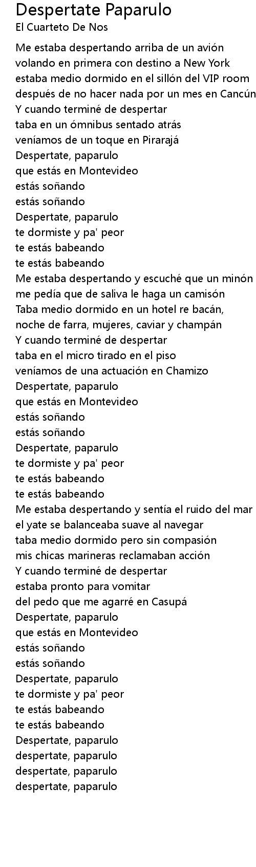 | Song | Despertate Paparulo |