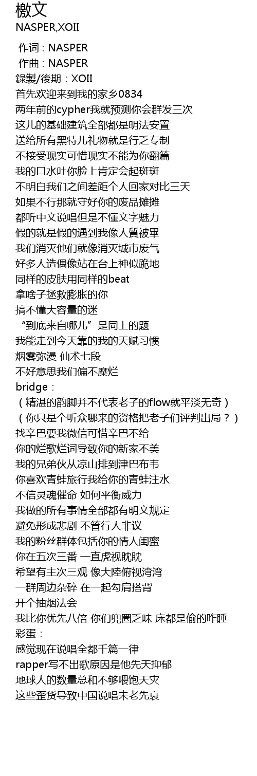 | [00:47.625] | (精湛的韵脚并不代表老子的flow就平淡无奇) |