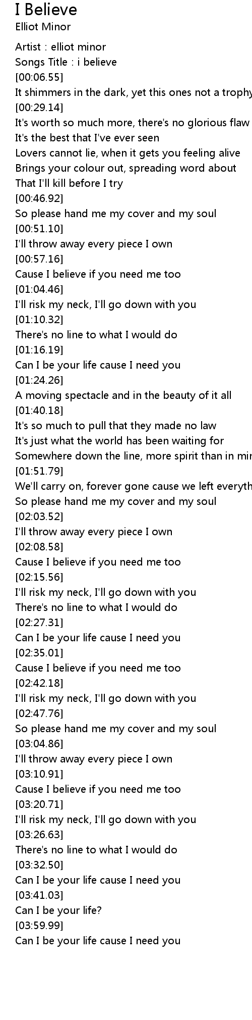 | [00:59.28] | Cause I believe if you need me too |