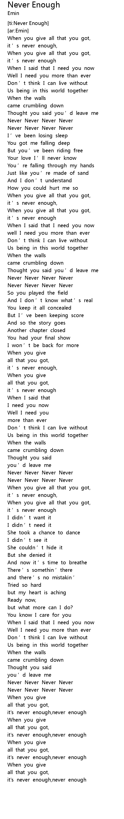 | ti: Never Enough | |