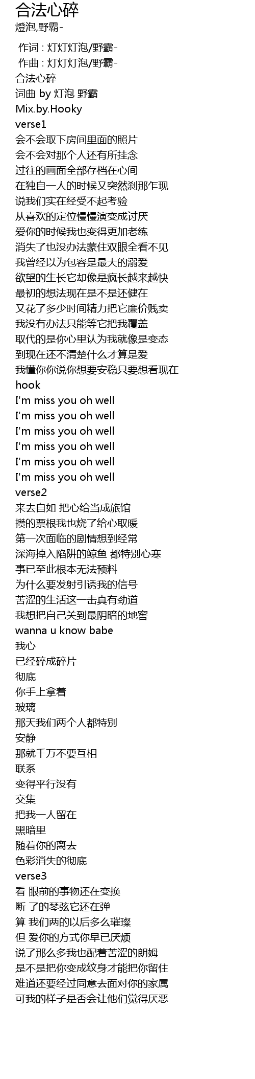 | [00:06.940] | 词曲 by 灯泡 野霸 |