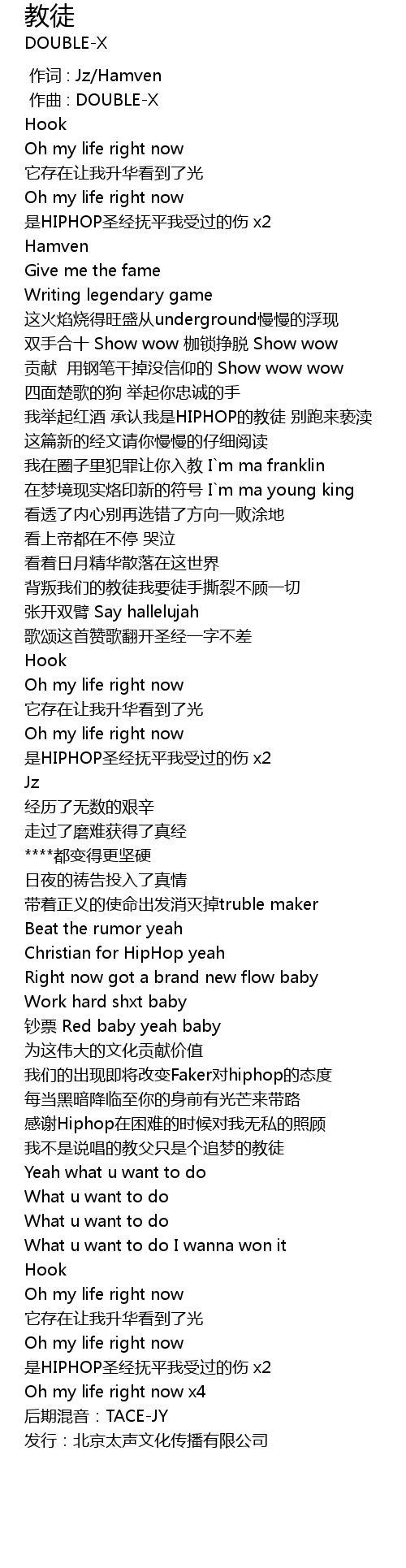 | [02:42.71] | 是HIPHOP圣经抚平我受过的伤 x2 |