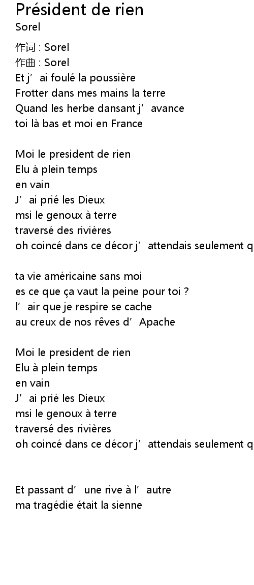 | Song | Président de rien |