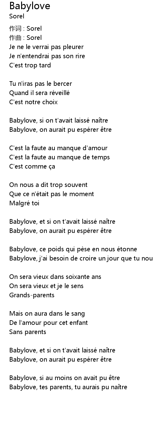 | Babylove, j'ai besoin de croire un jour que tu nous pardonnes | |