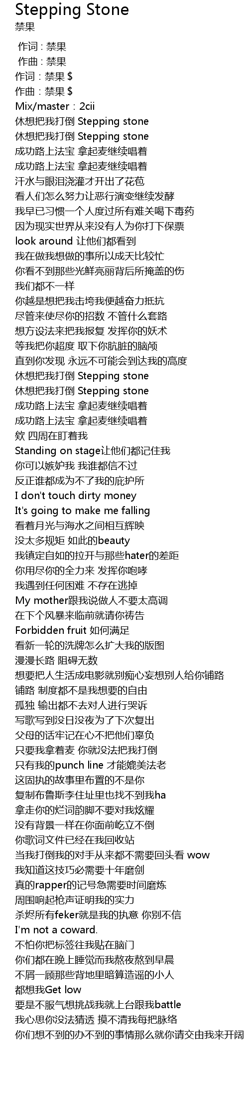 | [01:19.297] | 休想把我打倒 Stepping stone |
