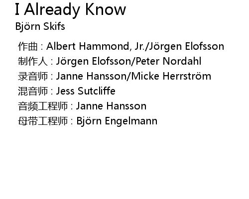 | [00:00.000] | zuò qǔ : Albert Hammond, Jr. J rgen Elofsson |