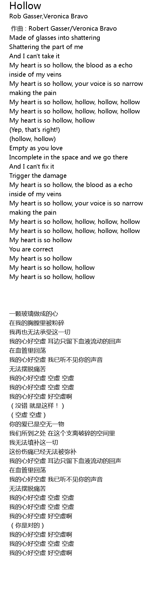 | [02:18.514] | My heart is so hollow, hollow, hollow, hollow |
