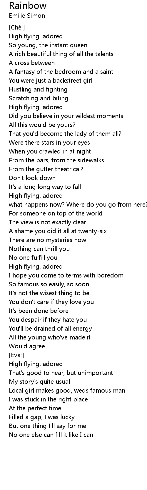 | High flying, adored | |