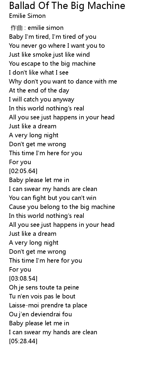 | [02:27.44] | Cause you belong to the big machine |