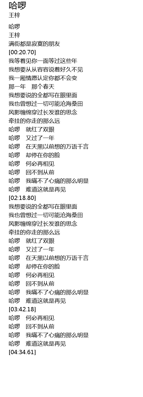 | [04:18.23] | 哈啰 我暪不了心痛的那么明显 |