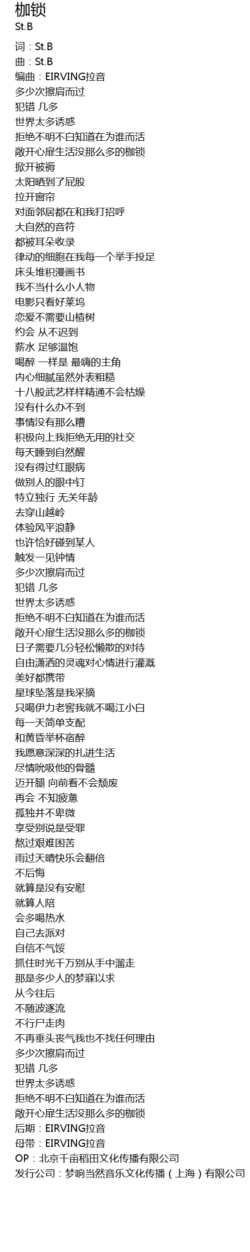 | [00:01.79] | 曲:St.B |