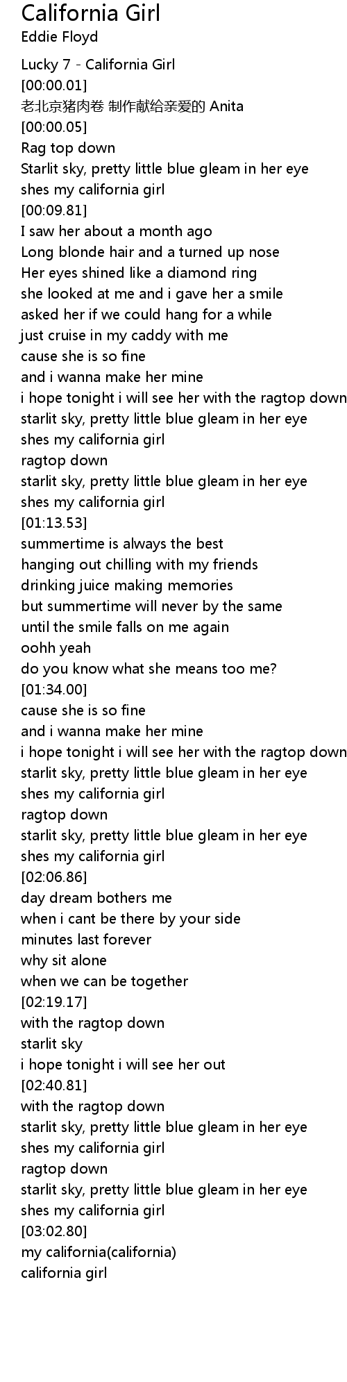 | [00:00.00] | Lucky 7 California Girl |