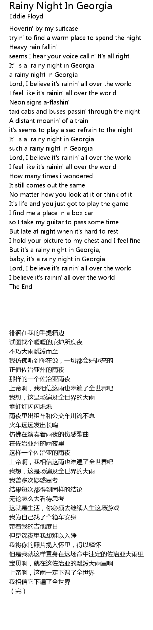 | [03:45.65] | baby, it's a rainy night in Georgia |
