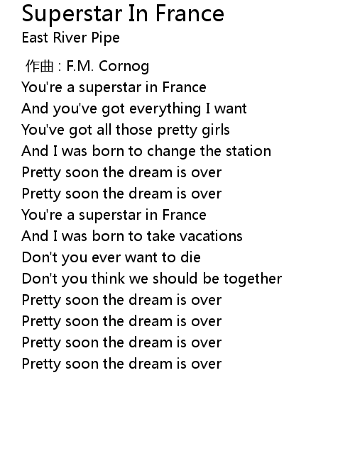 | [00:03.331] | You' re a superstar in France |