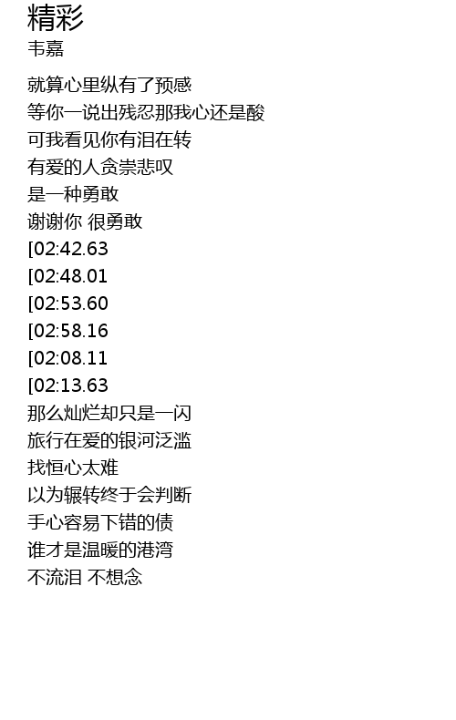| [03:03.74][02:08.11][01:09.43] | 不流泪 不期待 |