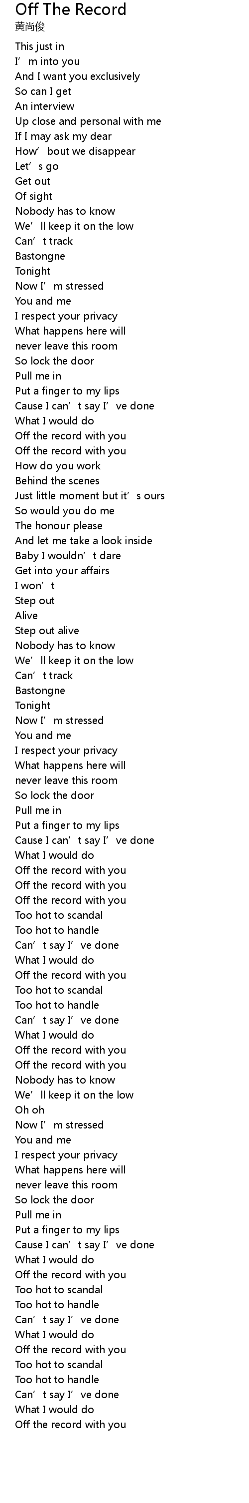 | [00:50.368] | Off the record with you |