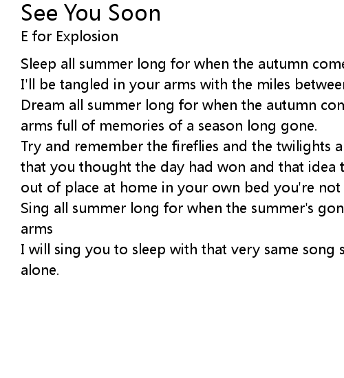 Sing all summer long for when the summer's gone and you're drifting off in my arms |