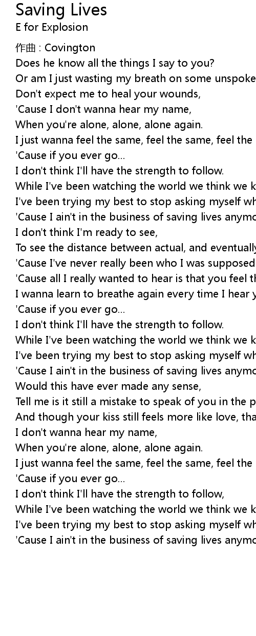 | Song | Saving Lives |