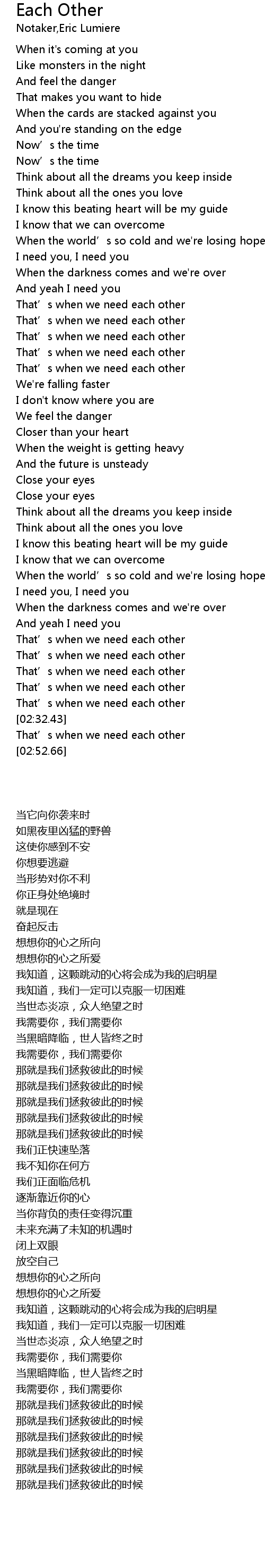 | [01:54.00] | When the world' s so cold and we' re losing hope |