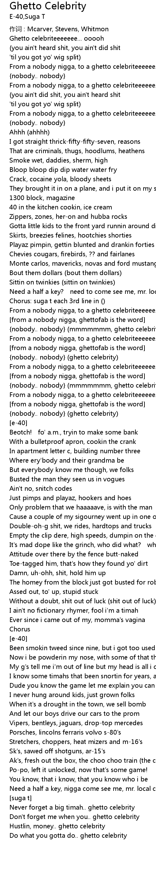 | From a nobody nigga, to a ghetto celebriteeeeee.. | |
