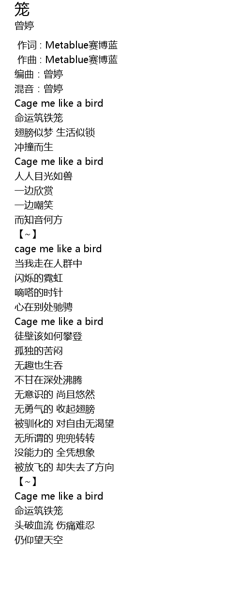| [00:38.022] | Cage me like a bird |