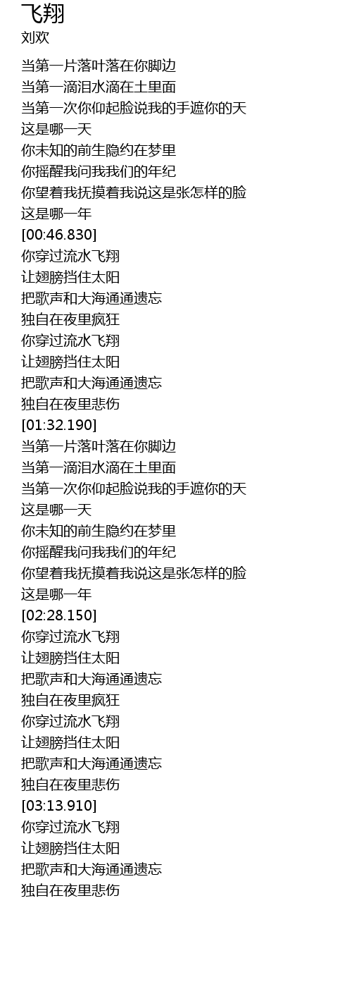 | [03:15.100] | ni chuan guo liu shui fei xiang |