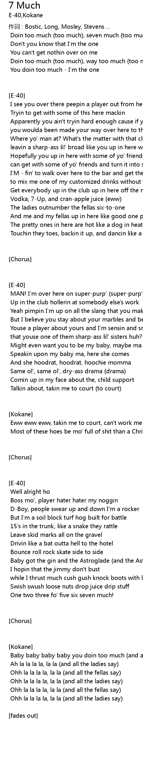 | Baby baby baby baby you doin too much (and all the fellas say) | |