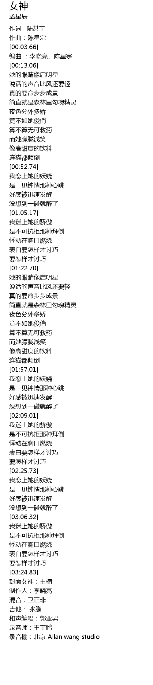 | [03:25.92] | feng mian nv shen: wang nan |
