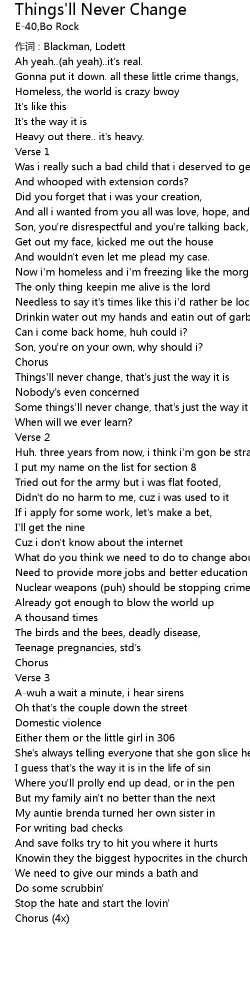 | Some things' ll never change, that' s just the way it is | |