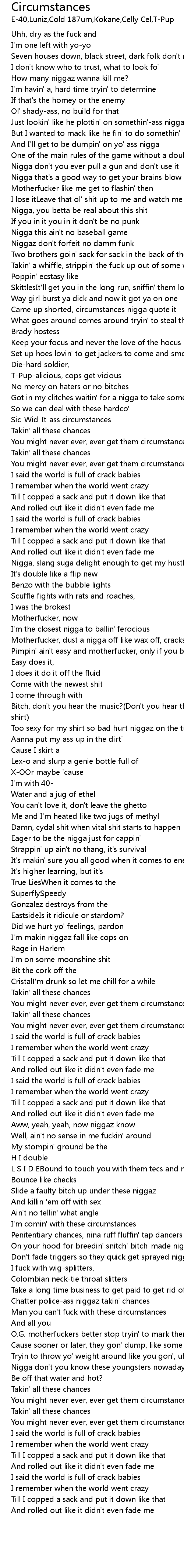 Came up shorted, circumstances nigga quote it |