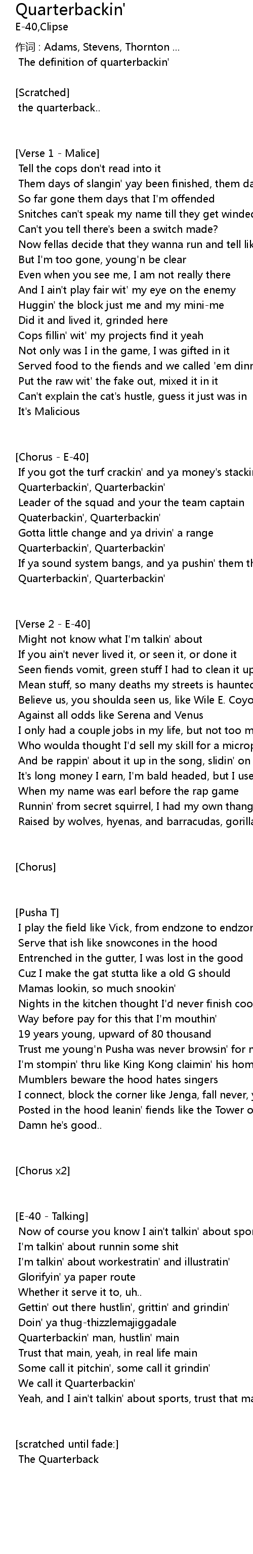 | Them days of slangin' yay been finished, them days have been done ended | |