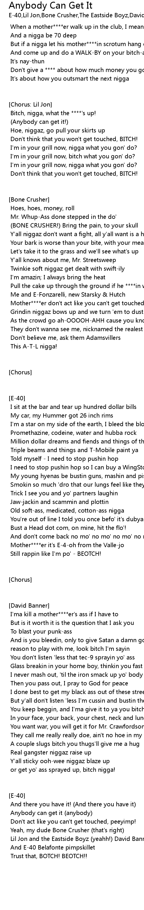 Lil Jon and the Eastside Boyz (yeahh!) David Banner |