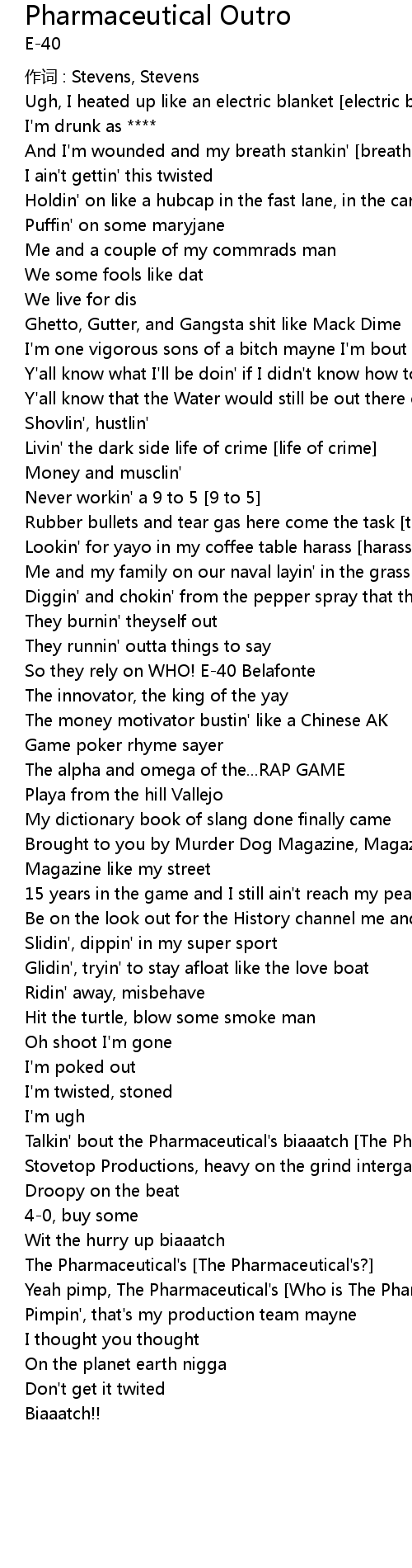 | Song | Pharmaceutical Outro |