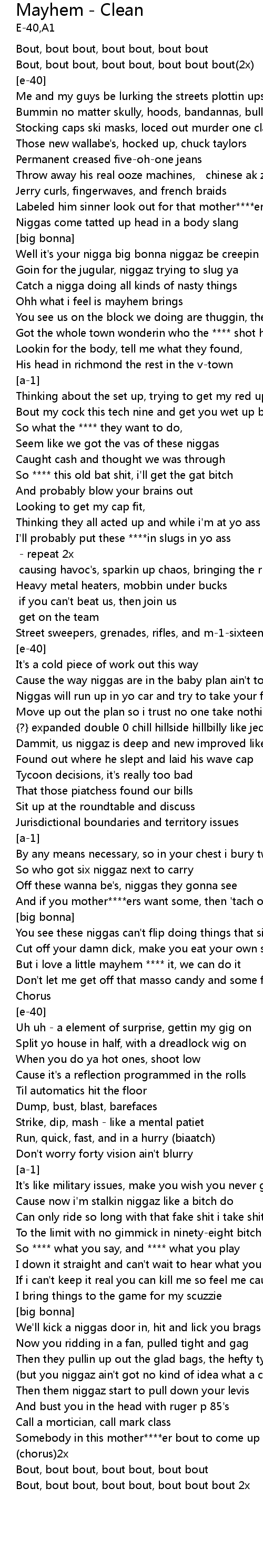 | Chorus: [e-40 and big bonna] - repeat 2x | |