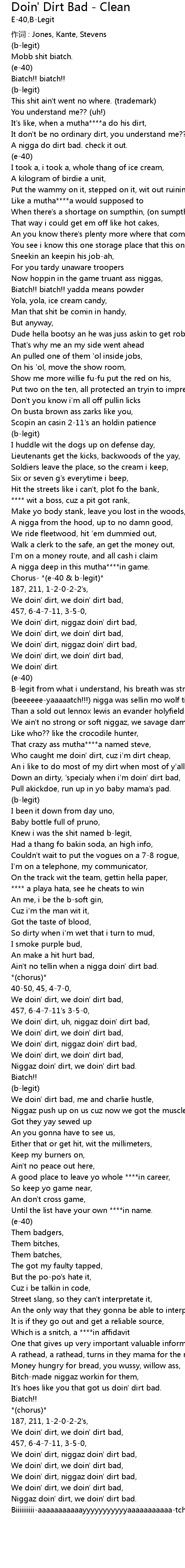 | We doin' dirt, uh, niggaz doin' dirt bad, | |