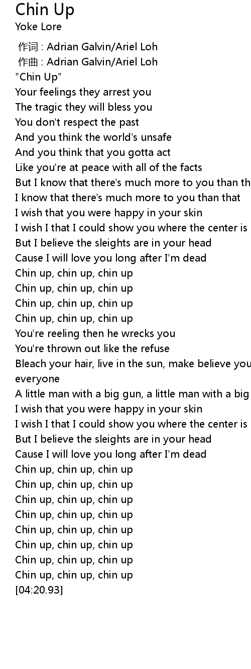 | [03:45.33] | Chin up, chin up, chin up |