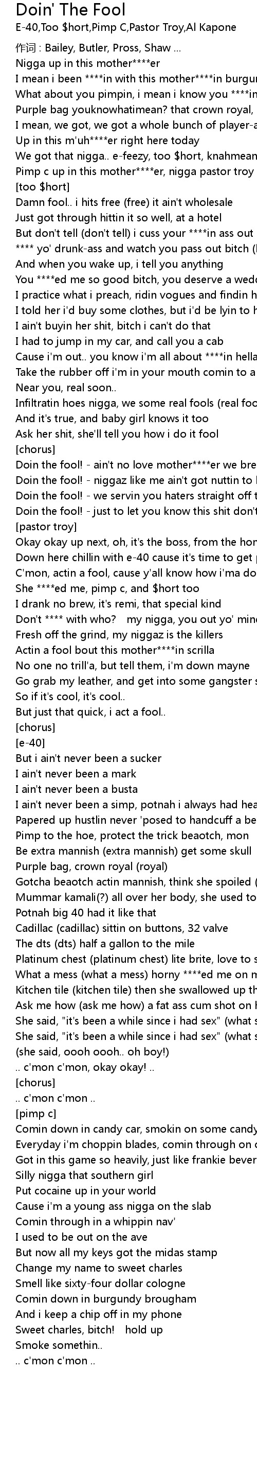 | Pimp c up in this mother****er, nigga pastor troy | |