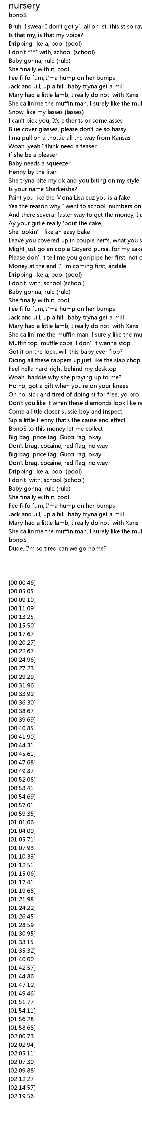 | [00:59.35] | Please don' t tell me you gon' pipe her first, not okay |
