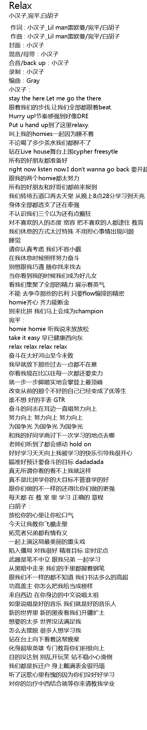 | [01:11.33] | homie homie 听我说来放放松 |