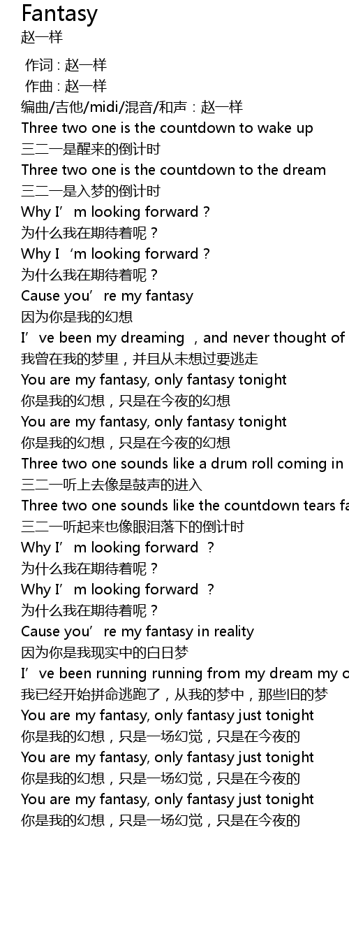 | [00:02.626] | 编曲/吉他/midi/混音/和声:赵一样 |