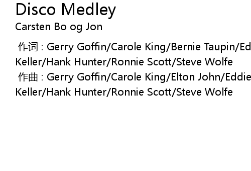 | [00:00.000] | zuo ci : Gerry Goffin Carole King Bernie Taupin Eddie Grant Jack Keller Hank Hunter Ronnie Scott Steve Wolfe |