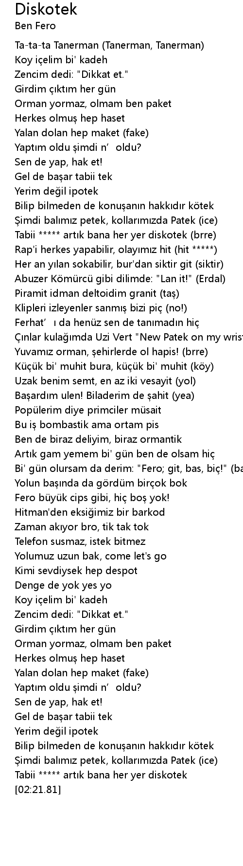 | [00:38.94] | Tabii ***** artık bana her yer diskotek (brre) |