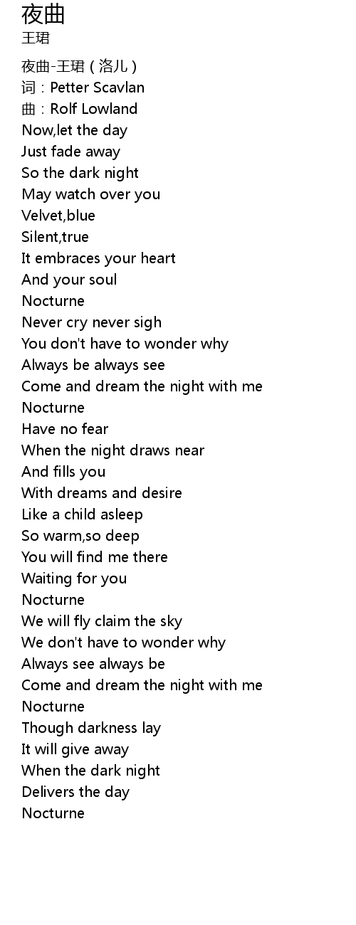 | [00:00.00] | 夜曲-王珺(洛儿) |