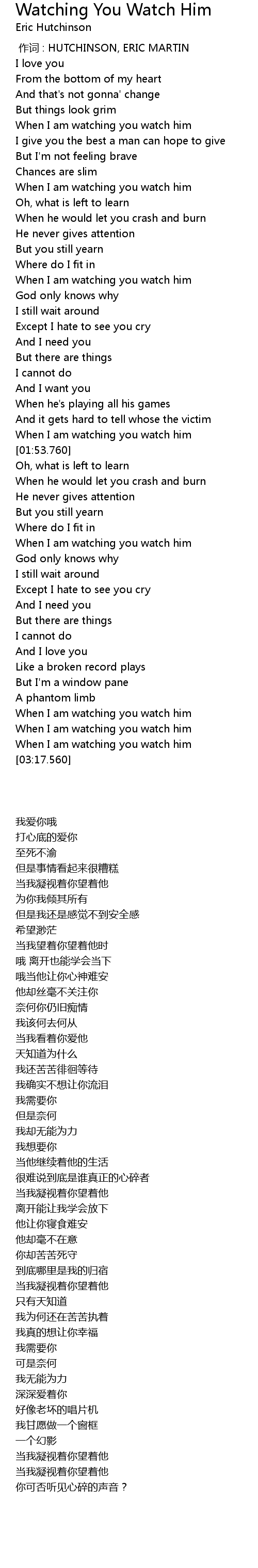 | [03:04.210] | When I am watching you watch him |