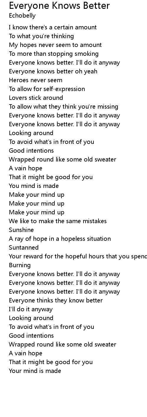 | Everyone knows better oh yeah | |