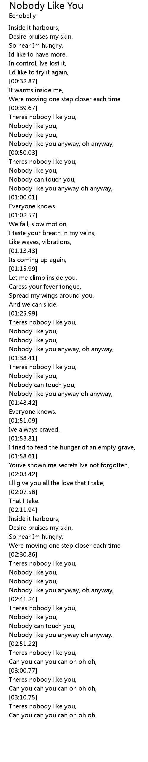 | [02:46.41] | Nobody like you anyway oh anyway. |